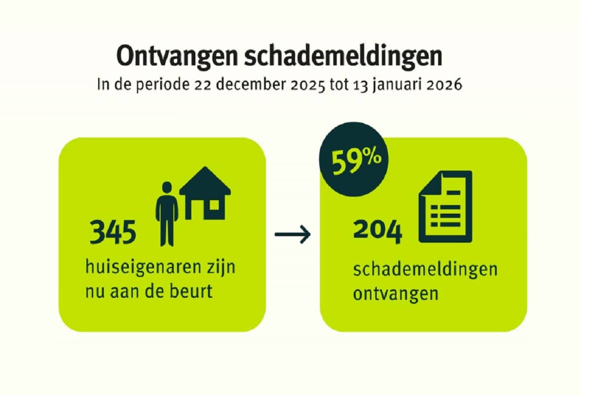 15 januari 2026 - 345 huiseigenaren zijn nu aan de beurt om schade te melden. Tot 13 januari ontvingen wij in totaal 204 schademeldingen.
